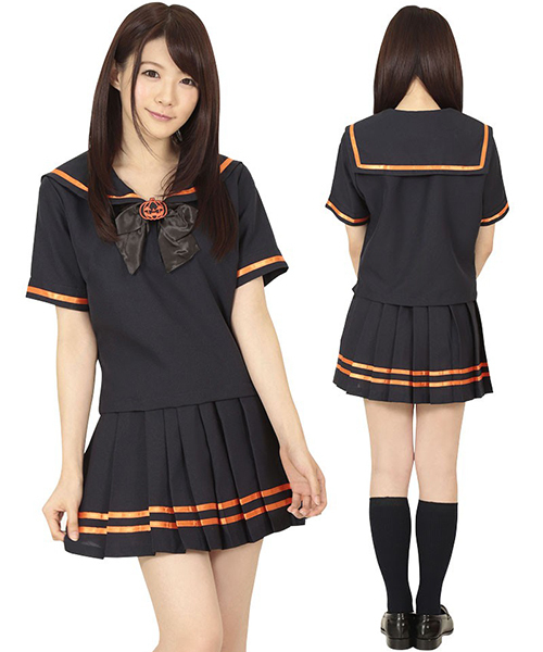 制服コスプレでさりげなくハロウィンモード♪ブラック×パンプキンカラーのセーラー服。