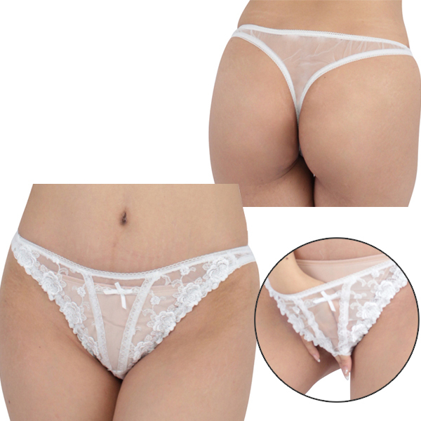 トップページ > オープン ブラ・ショーツ(穴あき) > 極薄シースルー&レースオープンTバック ホワイト