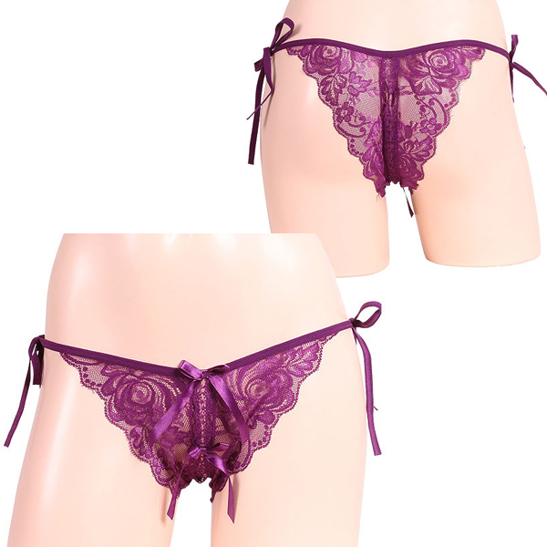 トップページ > オープン ブラ・ショーツ(穴あき) > 女らしさ満開サイドリボンオープンショーツ パープル