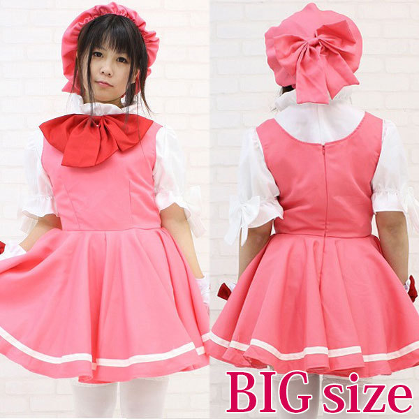 BIGサイズ:B〜92cm・W78〜84cm 丈:シャツ60cm(袖27cm、肩幅43cm)・ワンピース82cm・パニエ48cm・帽子頭囲〜90cm セット内容:帽子・シャツ(リボンタイ付き、背面ファスナー)・ワンピース・パニエ・手袋・手袋止め