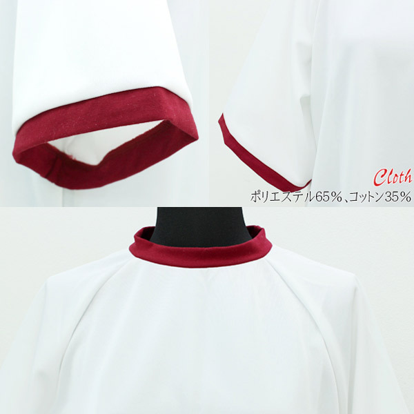 BIGサイズ:B〜120cm 着丈107cm 袖丈45cm 素材:ポリエステル65%、コットン35% 体操着ルームウェア 色:エンジ